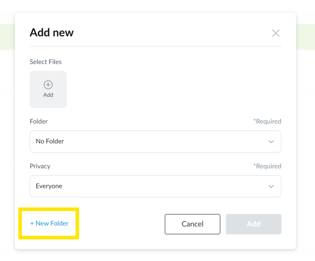 Note: While you can add files without a folder, using folders is recommended for better organization.