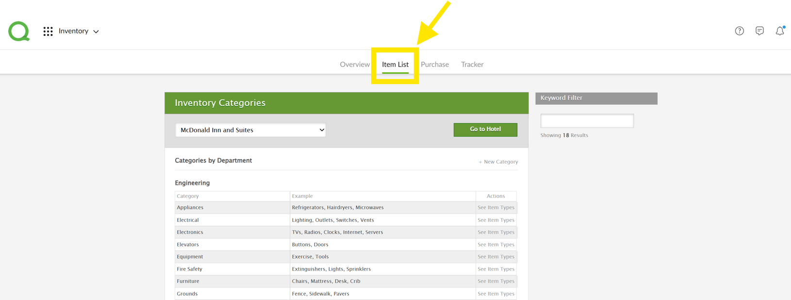 Customizing the inventory in Quore ensures the system accurately reflects what you have on property. The Inventory app will allow you to easily view your property’s assets by category to understand the ages, conditions, and quantities of items within your hotel.