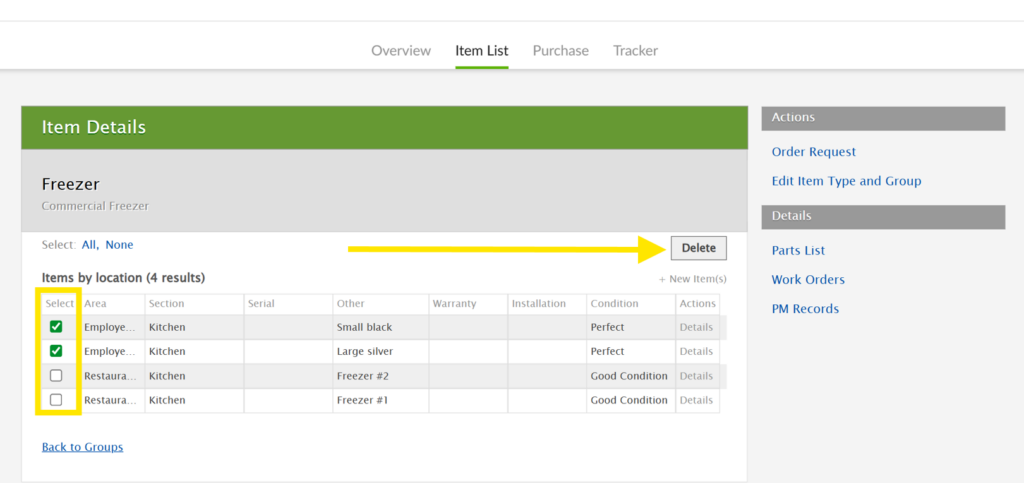 Note: You will not be able to delete an item if there is Work Order history associated with it.