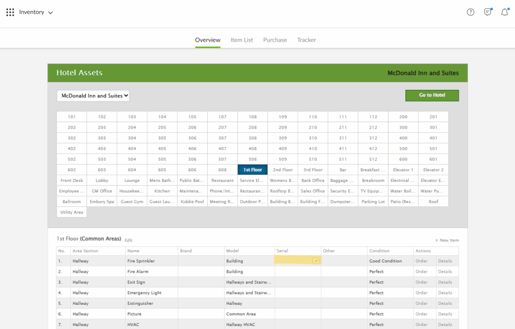 1. From the Overview page in the Inventory app, click on the area in the Hotel Assets grid for the item you wish to edit.