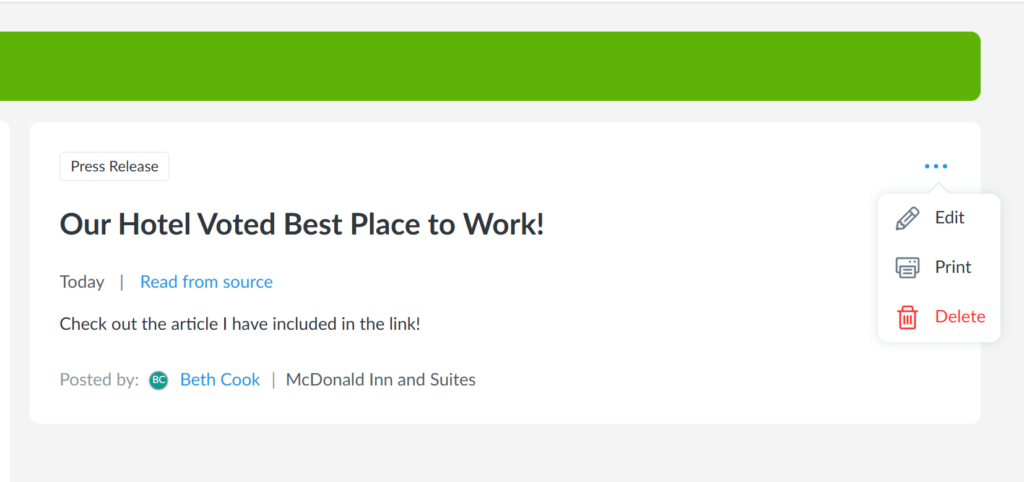 3. Click on the three dot menu in the top-right corner of the entry to Edit, Print, or Delete.
