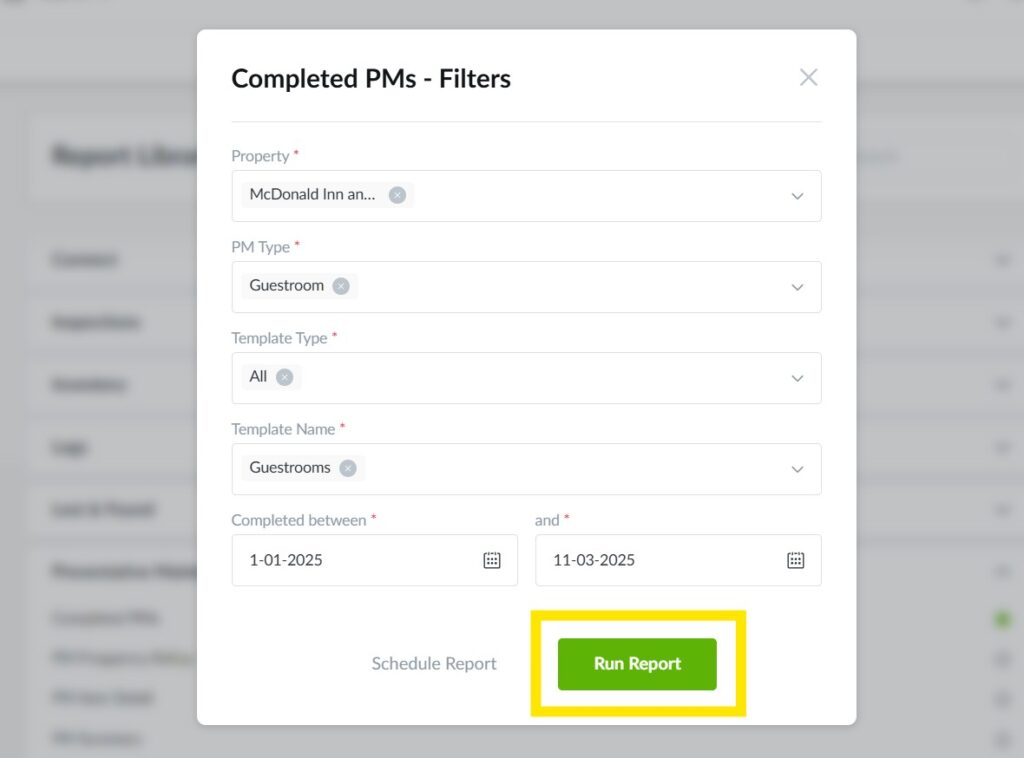 Pro Tip: Clicking into a guestroom on the PMs rooms grid will allow you to print the PM results.