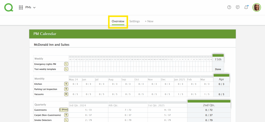 Pro Tip: The letters in the left column stand for different types of PMs, such as B for Building, L for Life Safety, M for Mechanical, and G for Guestroom. G (Prim) means that is your primary guestroom template.