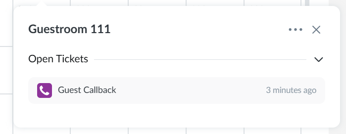 4. The Guest Callback will appear in purple on that room in 15 minutes. If not completed, it will expire after 3 hours and go into your Guest Callback records as “Never Called“.