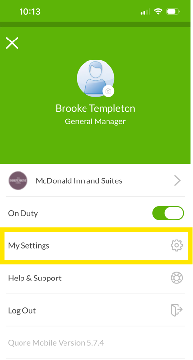 1. Log in to the Quore mobile app. Select the User Avatar in the bottom-left corner of your screen.